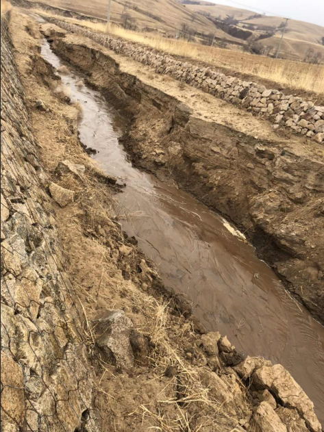 在2018年8月,一场突如其来的暴雨将已验收合格的丰宁满族自治县外沟门乡青石砬村菜园子土地整治(占补平衡)项目部分护地坝冲毁,排水沟被淤平,30m宽的河床被洪水冲出了3m深的沟槽。